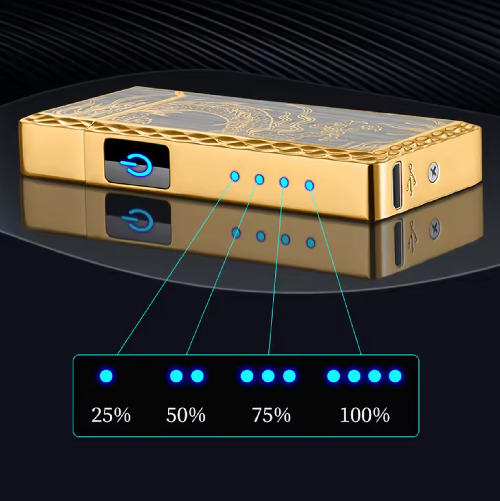 Se carga con USB en portátil, carro, cargador o power bank, y listo. Así no andas comprando repuestos ni botando encendedores a cada rato. Lo cargas como cargas el celular y te dura para uso diario sin complicarte.
